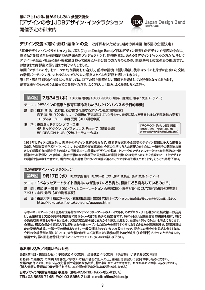 「第4回 第5回JDBデザイン・インタラクション・パーティのご案内」